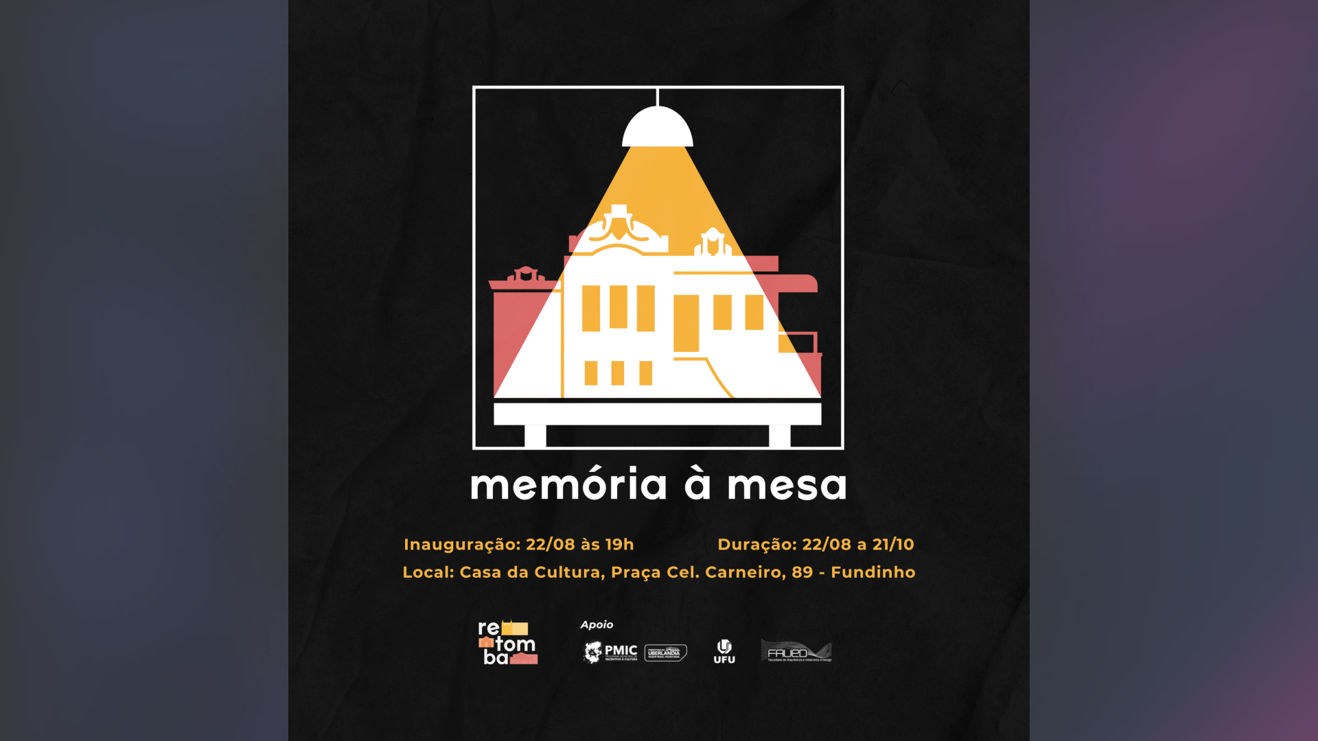 A exposição “memória à mesa”, realizada pelo grupo Retomba, está disponível para visitas na Casa da Cultura em Uberlândia. A obra tem foco em representar a história da Casa, por meio de uma composição interativa que convida os visitantes a tornarem-se parte da narração.