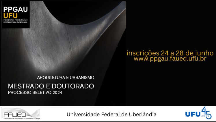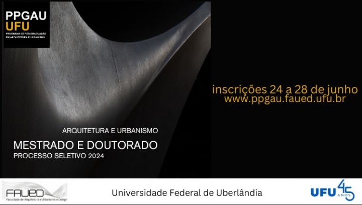 O Programa de Pós-graduação em Arquitetura e Urbanismo realiza inscrições para o processo seletivo, de acordo com edital próprio divulgado na página web do PPGAU-UFU e em outros meios de comunicação. Para se inscrever o candidato deve apresentar, o formulário de inscrição com os dados do candidato e documentação, conforme edital.